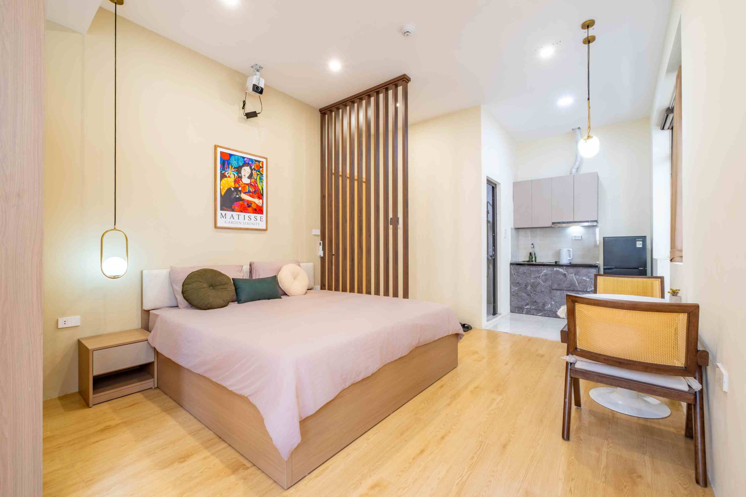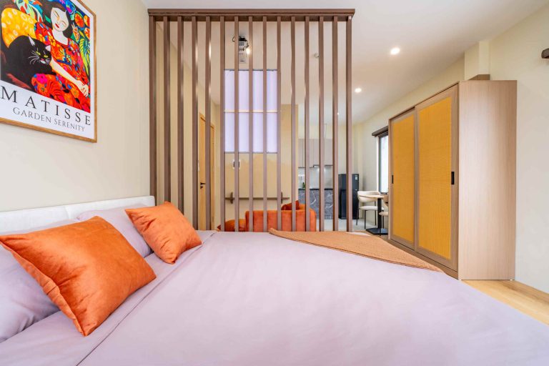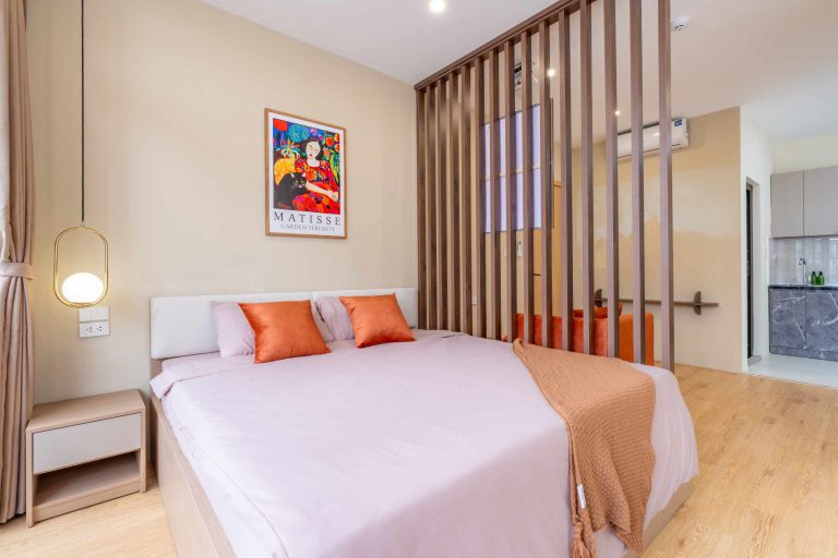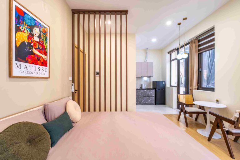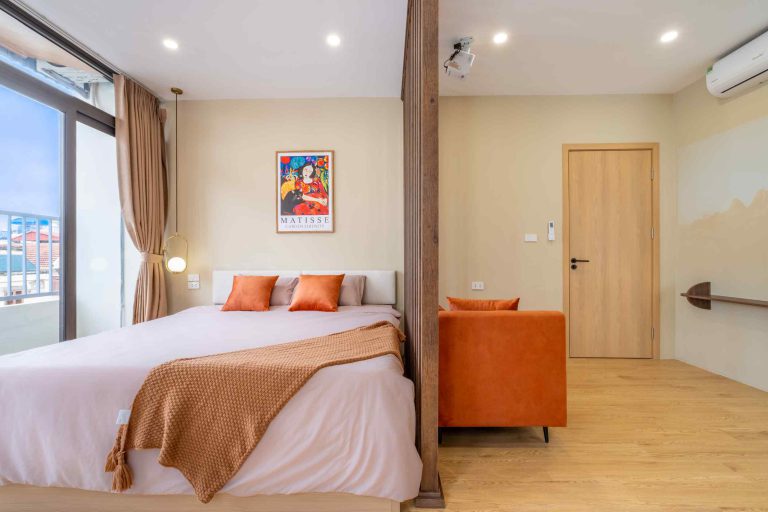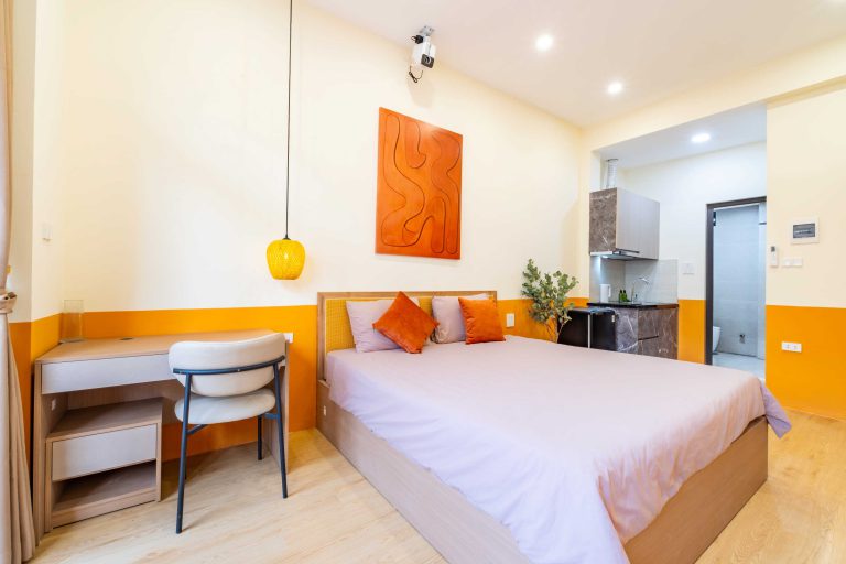 Tòa nhà gồm 10 phòng được thiết kế theo phong cách hiện đại, tinh giản nhưng vẫn giữ được sự ấm cúng trong từng chi tiết. Trong đó có 3 căn 1 phòng ngủ 1 phòng khách (1N1K) dành cho những ai cần không gian rộng rãi hơn, và 7 căn studio gọn gàng, tiện nghi – phù hợp cho cả những chuyến đi ngắn ngày lẫn lưu trú dài hơn.