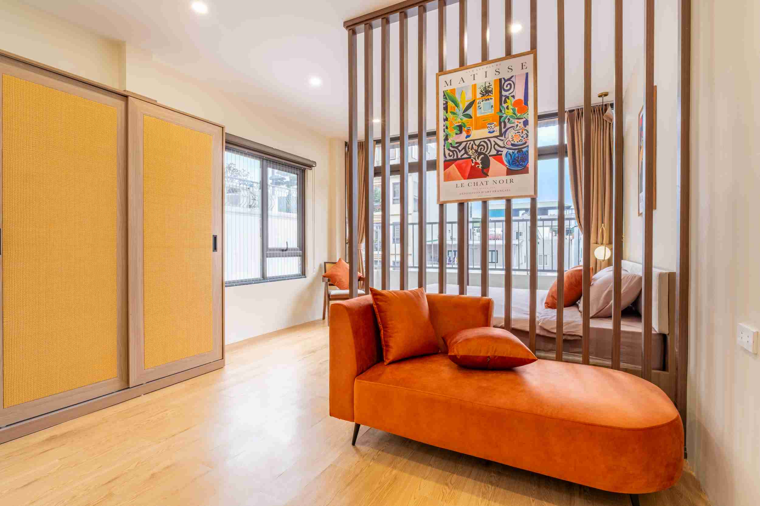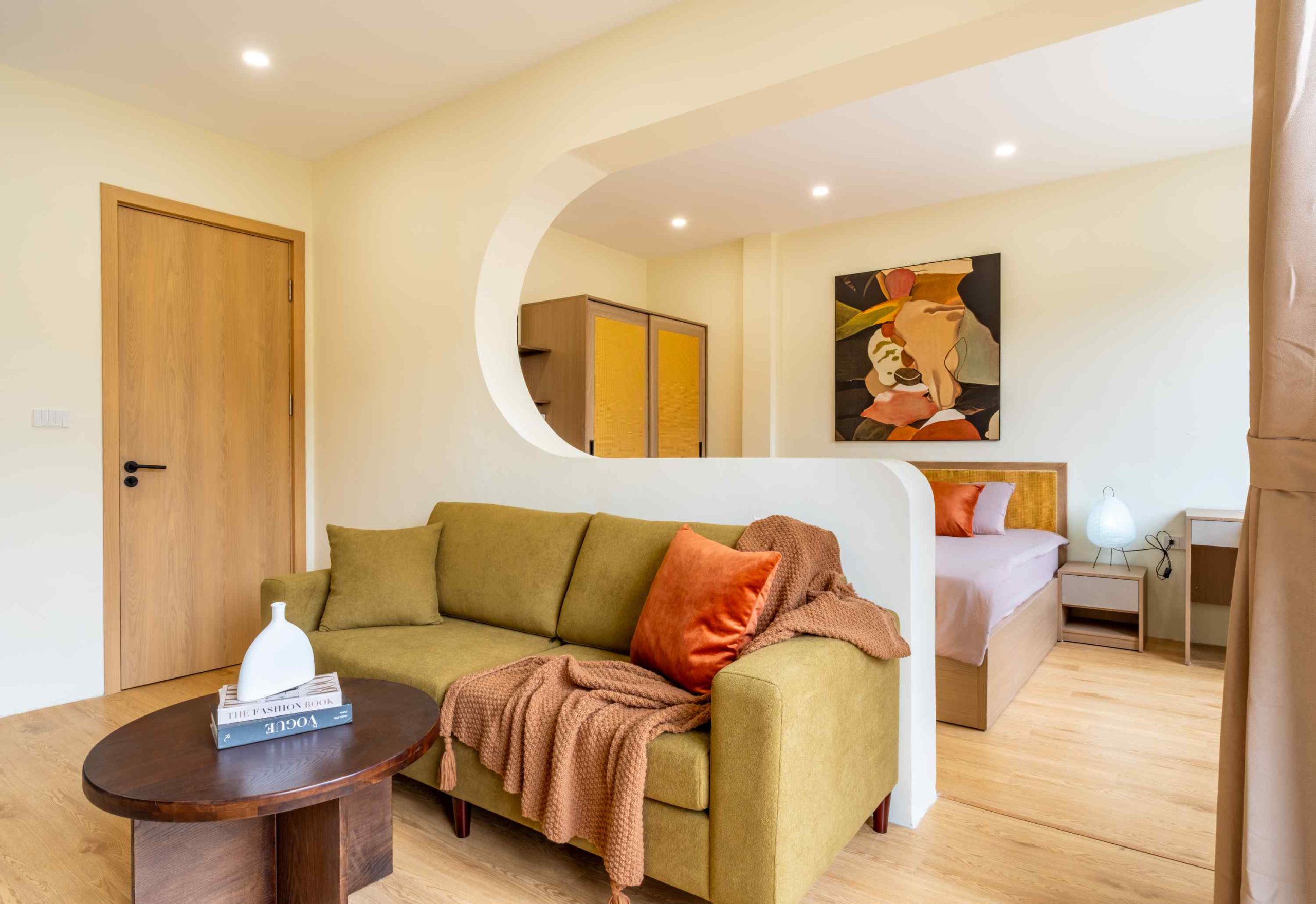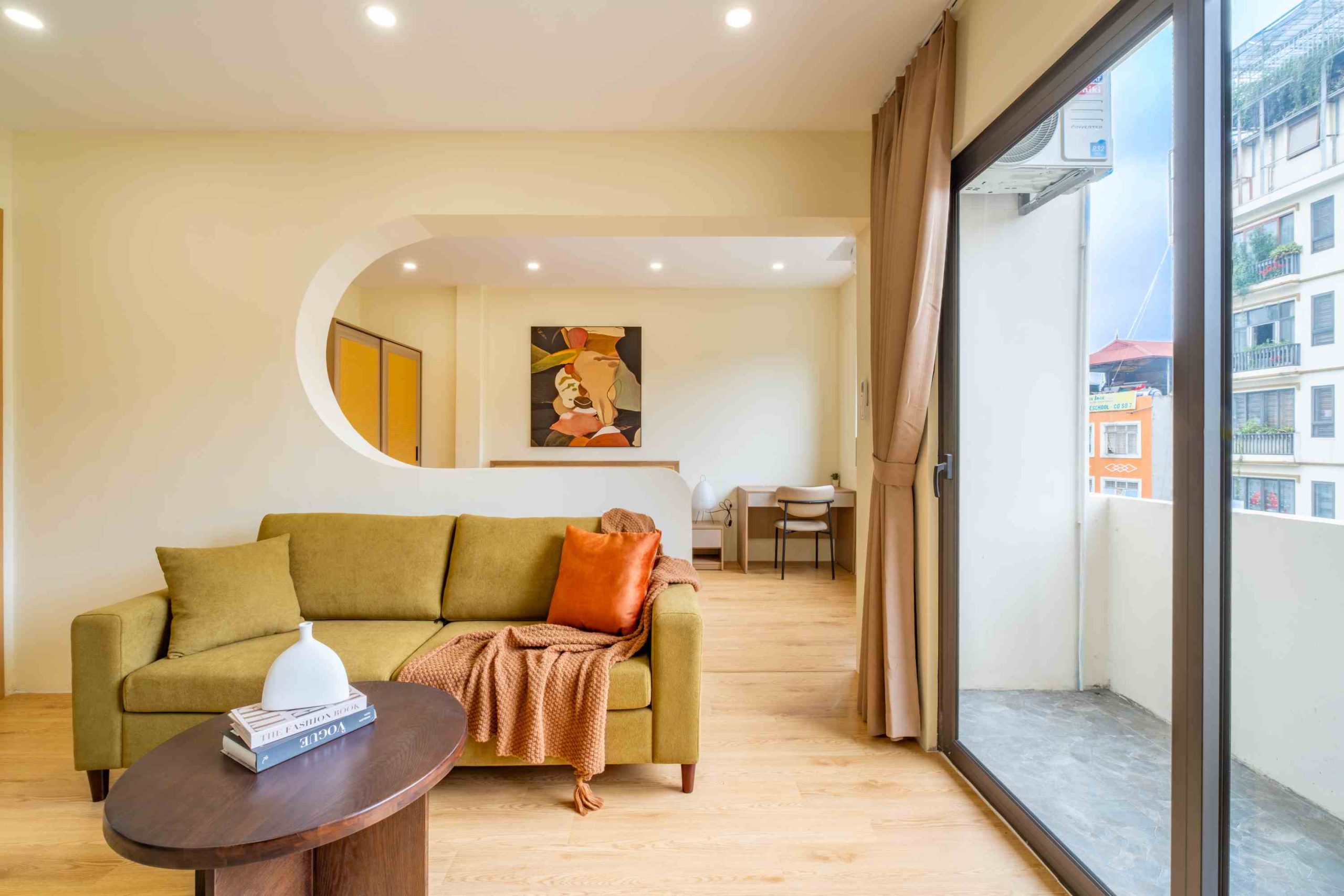 Tòa nhà gồm 10 phòng được thiết kế theo phong cách hiện đại, tinh giản nhưng vẫn giữ được sự ấm cúng trong từng chi tiết. Trong đó có 3 căn 1 phòng ngủ 1 phòng khách (1N1K) dành cho những ai cần không gian rộng rãi hơn, và 7 căn studio gọn gàng, tiện nghi – phù hợp cho cả những chuyến đi ngắn ngày lẫn lưu trú dài hơn.